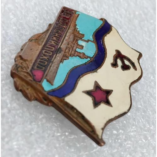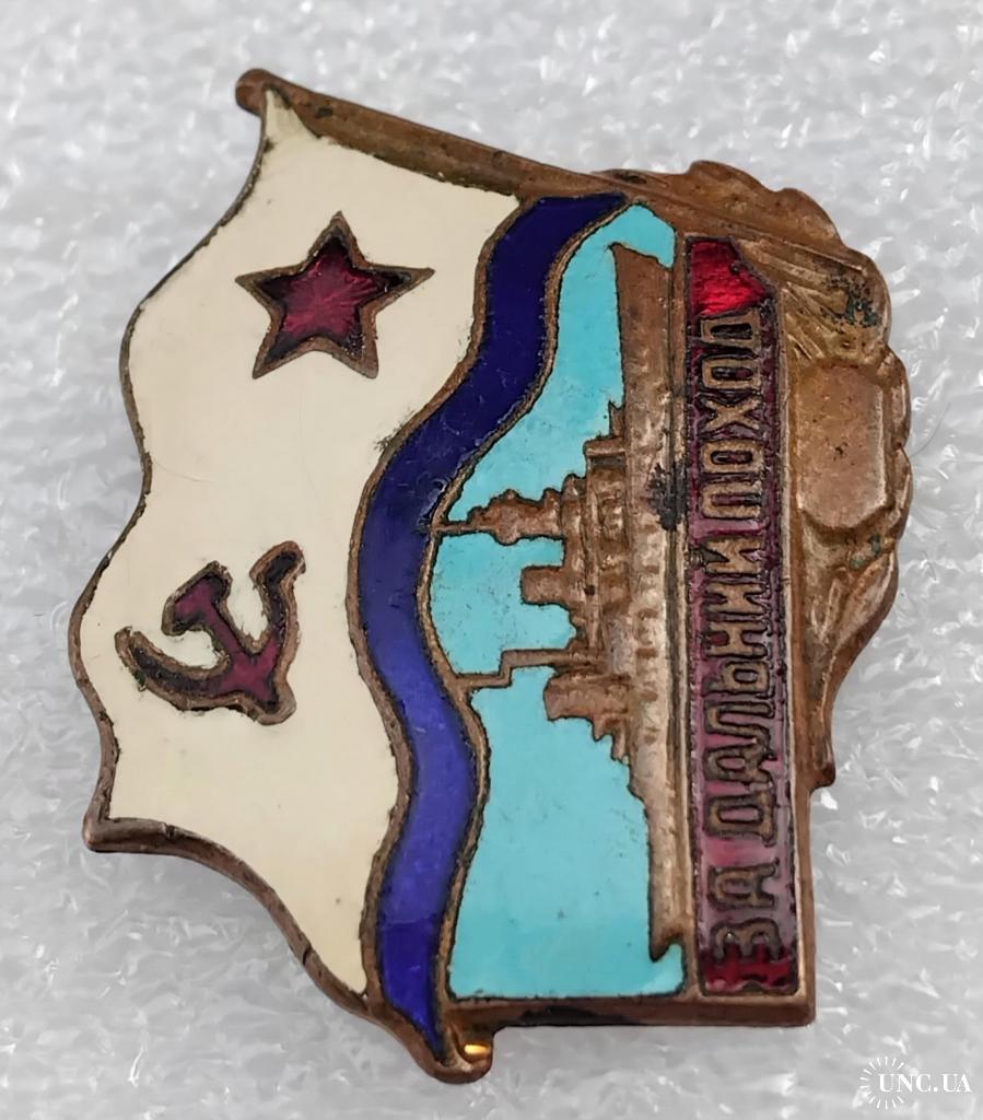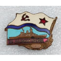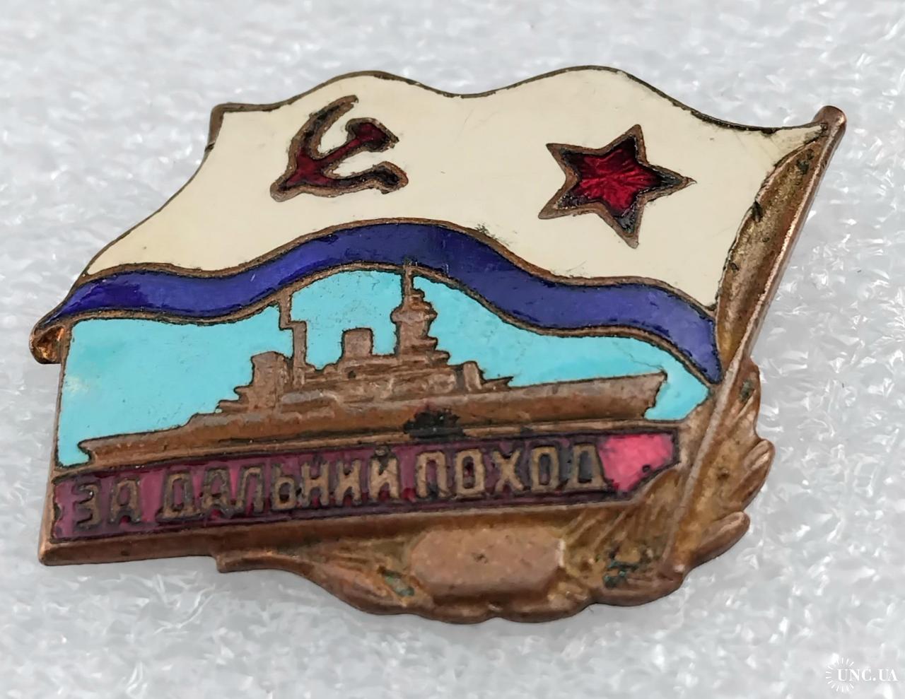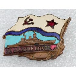 1961-1980☝️Знак 'За дальний поход' из ранних,диапазона 1970г. (тяжмет).Для моряков надводного флота.
