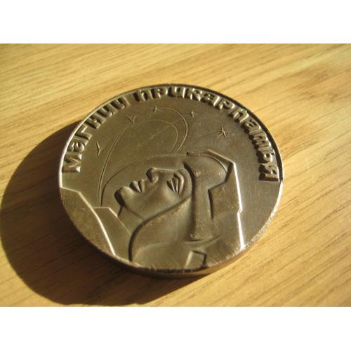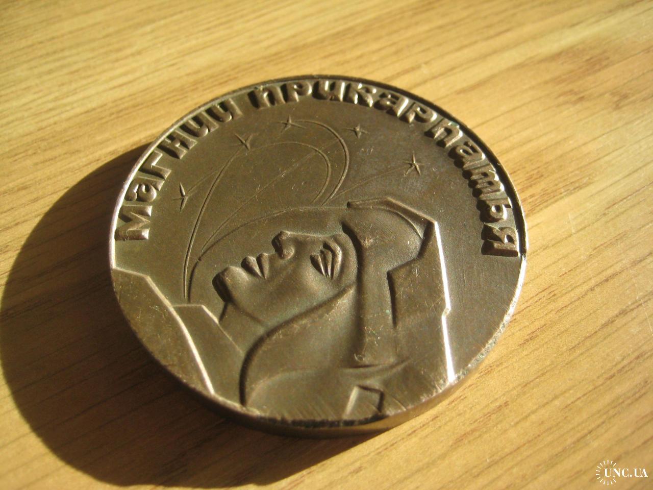 №4523. Оригінальна пам'ятна настільна медаль (важк. мет.) - Магній Прикарпаття Калуш УРСР. Діаметр - 60мм. Стан прошу оцінювати по фото. Пересилка - Нова пошта, Укрпошта. Для киян можливість зустрічі та перегляду (неділя метро Нивки). В РФ и Белоруссию не отправляю!