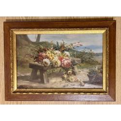 Цветочный натюрморт, выполненный маслом на холсте. Работа отличается мягкой колористикой и свободной живописной манерой. Происходит из частной коллекции. Состояние хорошее.