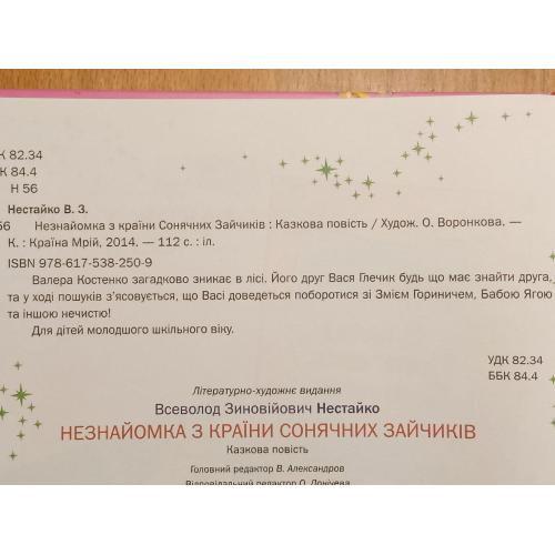 Нестайко. Незнайомка з Країни Сонячеих Зайчиуів. Видавництво: Країна Мрії. 2014 р. Большой формат Очень хорошее, нона чистом форзаце дарственная надпись библиотеке