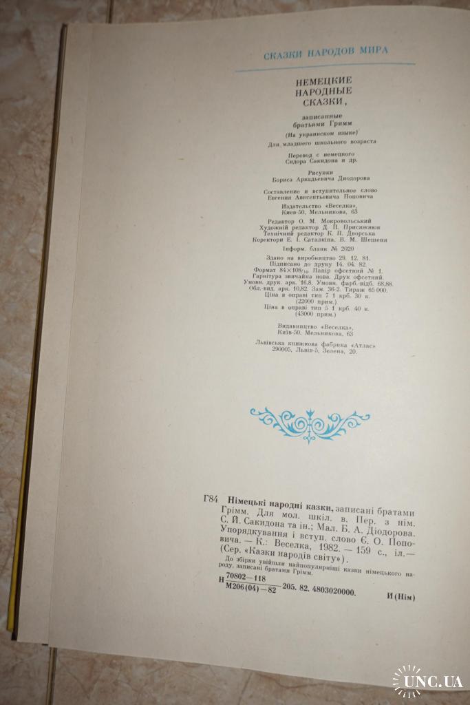 Серія: Казки народів світу. Малюнки Б.Діодорова. Київ. Веселка 1982р.г. 159с. Палiтурка / переплет: Тверда, дуже великий формат.