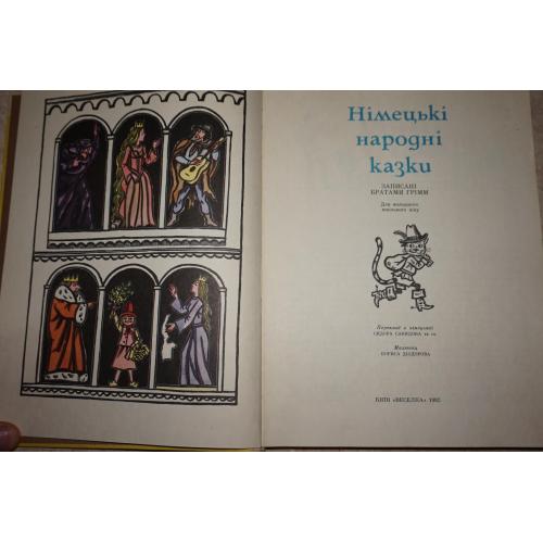 До збірки увійшли найпопулярніші казки німецького народу, записані братами Грімм. Зміст: Вовк і семеро козенят. Гензель і Гретель. Пані Метелиця. Червона Шапочка. Бременські музиканти. Мізинчик. Шість лебедів. Зачарована красуня. Король Дроздобород. Вовк і лисиця. Щасливий Ганс. Лікар Всезнай. Дух у пляшці. Кіт у чоботях. Блакитне світло. Гора Зімелі. Веретено, човник і голка. Морська свинка. Горщик каші. Соломинка, жарина й біб. Молодий велетень.