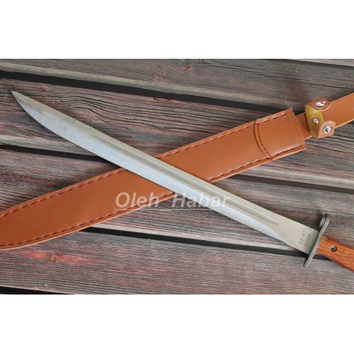 Ніж із фіксованим лезом, виготовлений із сталі 65Х13. Рукоятка - сталева з дерев'яними накладками на гвинтах (колір накладок може відрізнятись від тих, що на фото). Ніж зручно лежить у руці і добре підійде для полювання, риболовлі, походу. Дерев'яні вставки просочені спеціальним розчином, що робить його стійким до зношування. У комплекті з ножем йдуть ножни зі шкірозамінника з кріпленням на пояс.