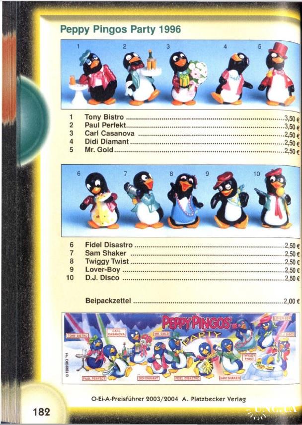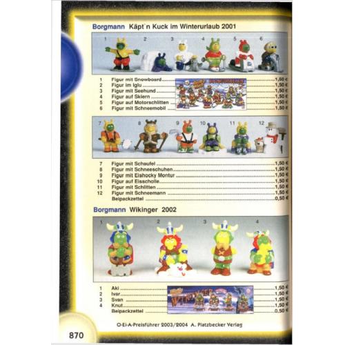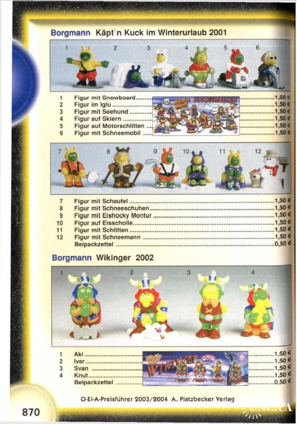 Описание: Это путеводитель и каталог для коллекционеров, который систематизирует информацию обо всех выпускавшихся фигурках и сопутствующих предметах, а также предоставляет актуальные рыночные цены на них. Юбилейный выпуск 2003/2004 годов, посвященный 10-летию серии Kinder.