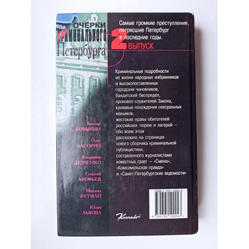 Второй выпуск "Очерков криминального Петербурга", подготовленный коллективом авторов (В. Бовыкин, Г. Арефьев, О. Засорин, В. Дудченко, М. Рутман и др.), погружает читателей в атмосферу криминального мира города на Неве.