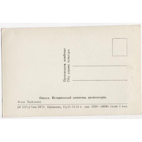 Одесса Исторический памятник архитектуры 21.11.1961 фото Вайсман ПК обл. управл. культуры