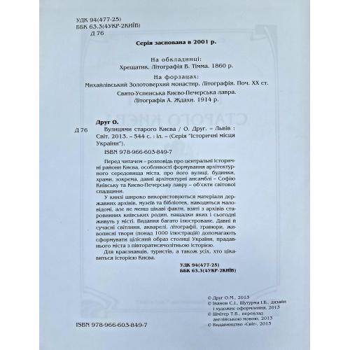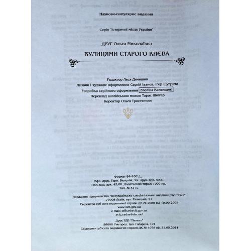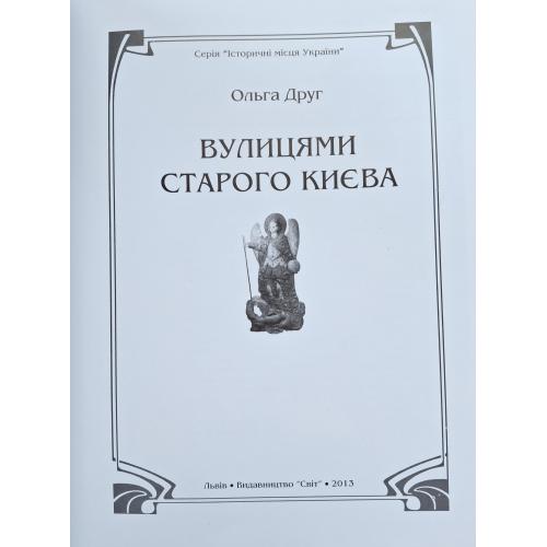 Книга відомої києвознавиці Ольги Друг “Вулицями старого Києва” – це розповідь про центральні історичні райони Києва, особливості формування архітектурного середовища міста, про його вулиці, будинки, храми, зокрема, давні архітектурні ансамблі – Софію Київську та Києво-Печерську лавру – об’єкти світової спадщини.