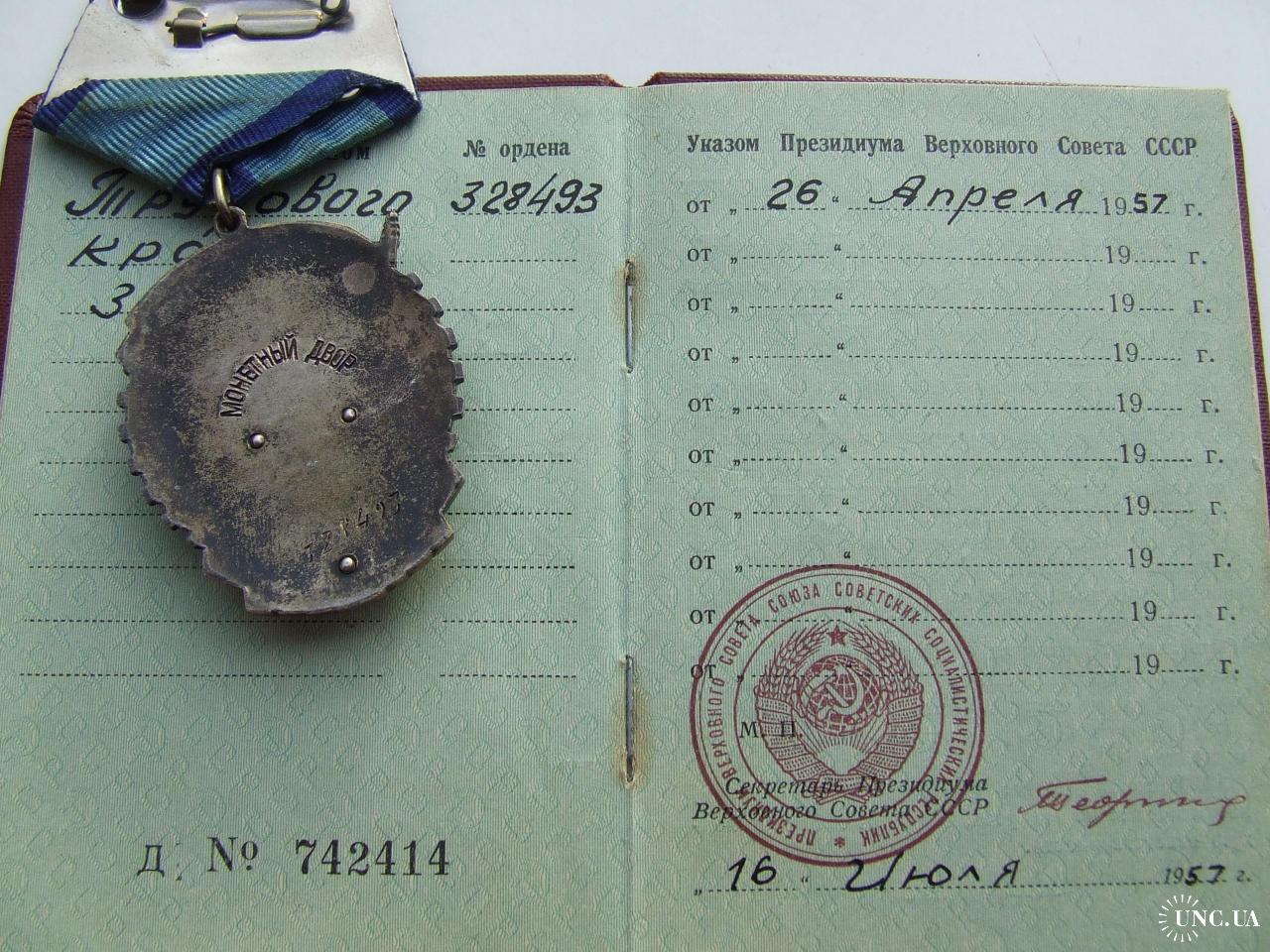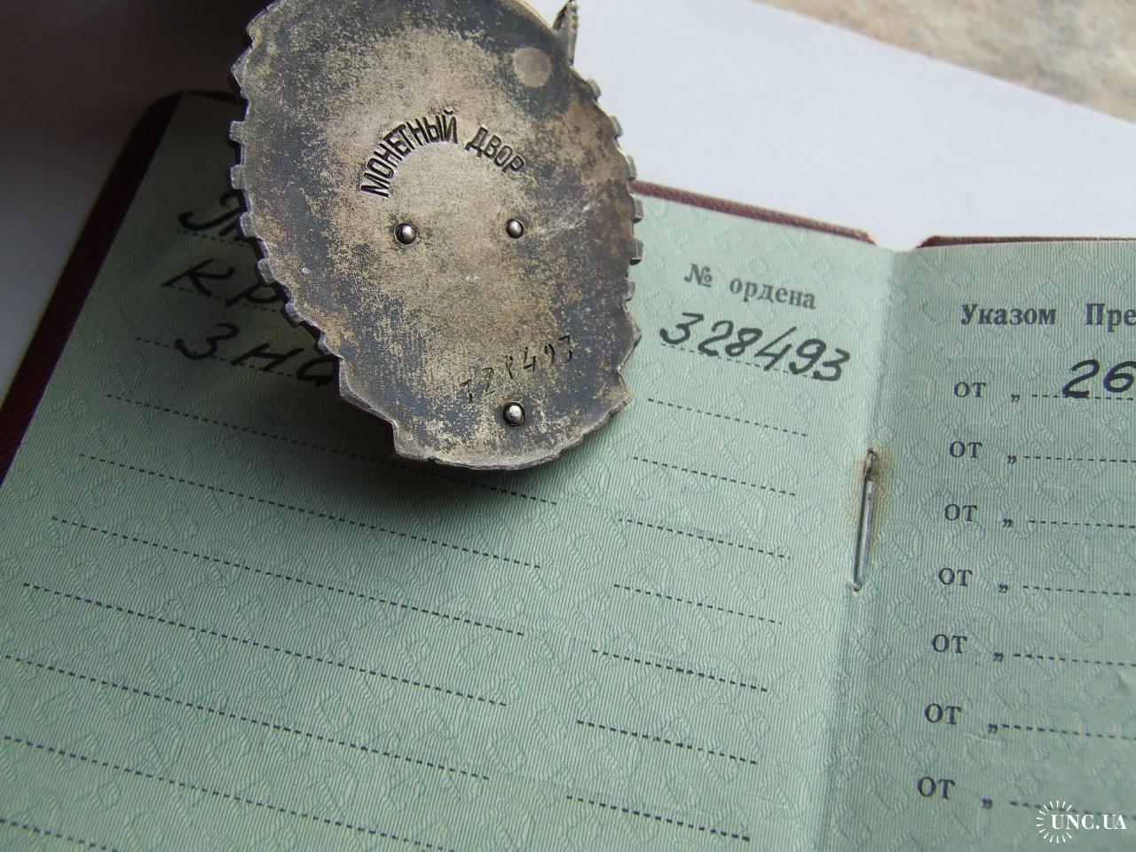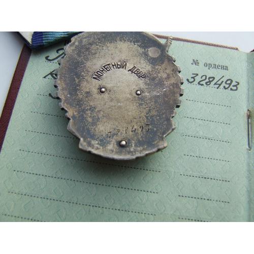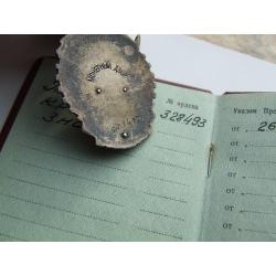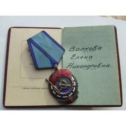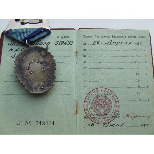 Орден ТКЗ -плоский № 328 493 награждения 1957 года + доки на Волкова Елена.в родной патине