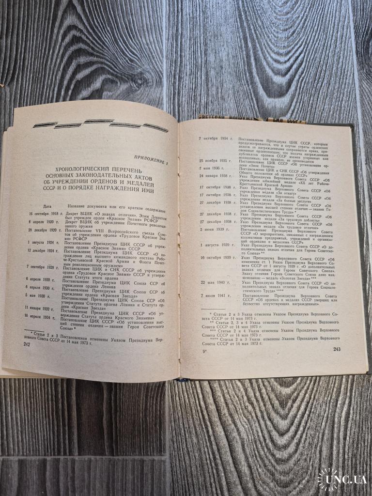 Кинга содержит сведения о наградной системе СССР данные из истории учреждения орденов и медалей СССР, выдержки из их Статутов или Положений, описание знаков орденов и медалей СССР и установленных для них лент. Отдельными разделами изложены порядок представления к награждению, обязанности награжденных, правила ношения орденов и медалей СССР и некоторые другие вопросы, связанные с награждением орденами и медалями.
