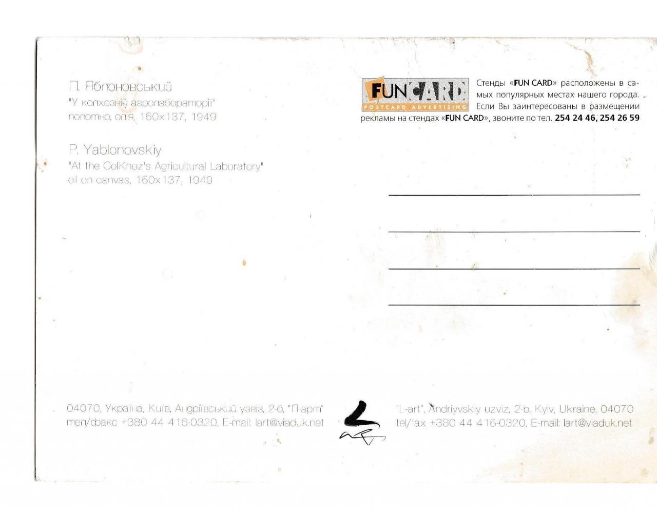 2001-2020Листівка, мистецтвоо, П. Яблоновський, "У колхозній агролабораторії".