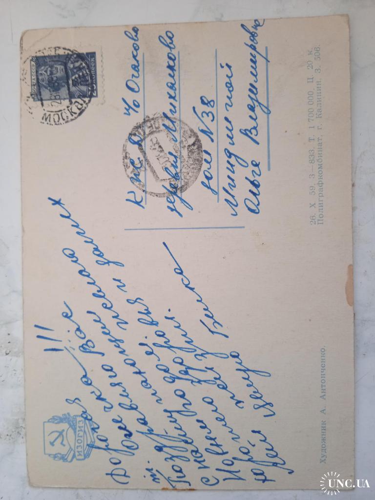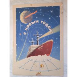 1941-1960Открытка 1959г,С Новым годом! , ледокол ,годовик, тираж 1 700 000+марка