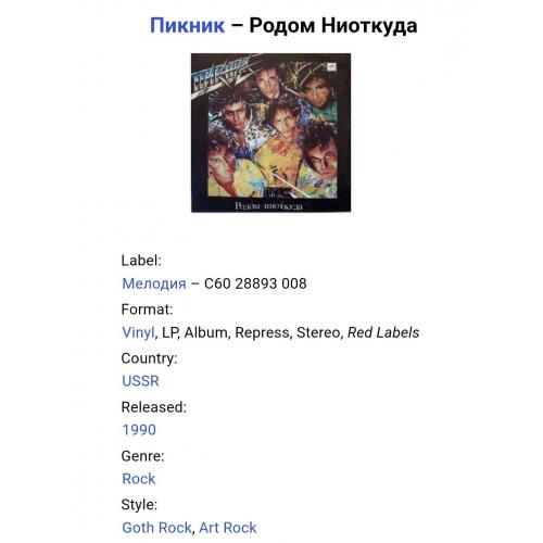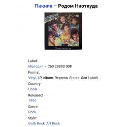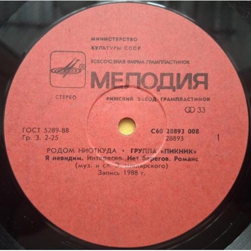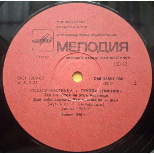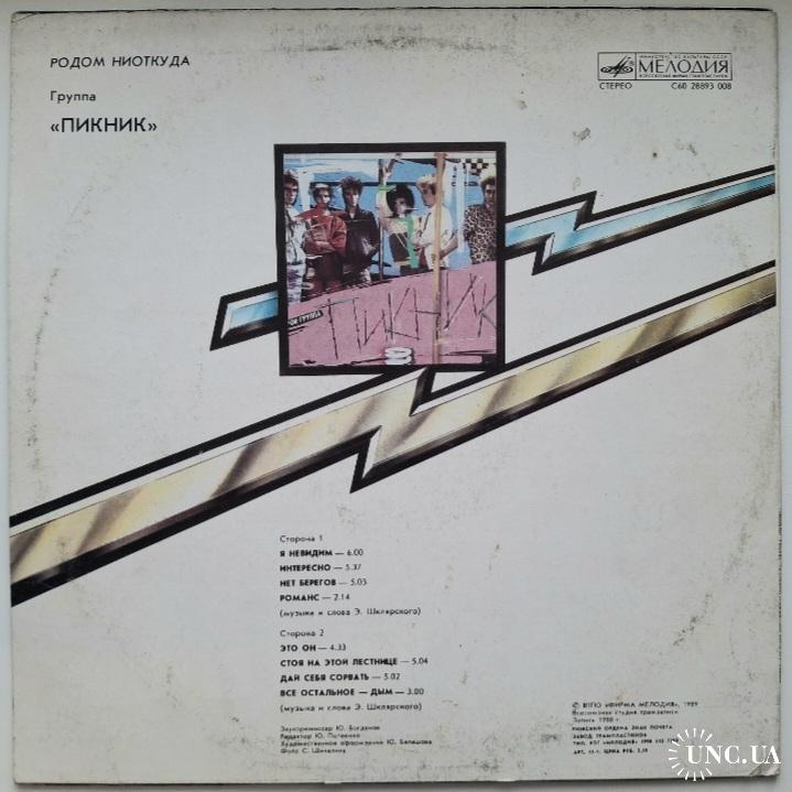 Вінілова платівка. Четвертий, в дискографії, студійний альбом російської (радянської) арт-рок, інді-рок групи нової хвилі, Пікнік, до складу якої входили Едмунд Шклярський, А. Савельєв, С. Воронін, Ю. Ключенцев, В. Євсєєв та В. Пономарьов (Родом Ниоткуда) 1988. Випуск фірми (Мелодія) СРСР, Рижський завод грамплатівок (Латвія) 1990-ий рік. Стан платівки ЕХ. Стан конверту ЕХ-. Відправка по Україні службами доставки: Нова Пошта, Укр Пошта, Делівері. Також відправляємо посилки за кордон по цілому світу.