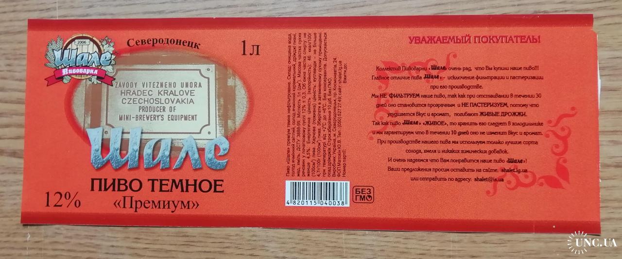 Пивная этикетка- Частная пивоварня ШАЛЕ янтарное Северодонецк