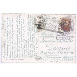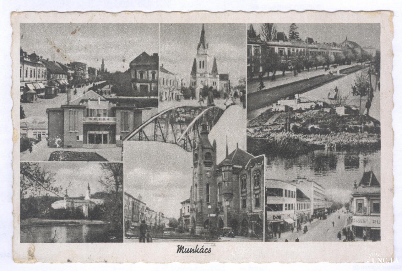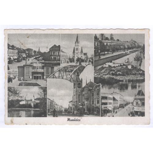 Мультивидовая открытка (сувенирка, грюс ) "Мукачево" отправлена 22 октября 1945 года в Киев на улицу Ленина 68 Варваре Долиной из Мукачево готель "Звезда". Оплачено коричнево-красной маркой первого стандартного выпуска Закарпатской Украины номиналам 200. Имеются оттиски штемпелей: " Закарпатская Украина" - синий, "Просмотрено Военной цензурой" - синий, "Киев почтамт" - черный.