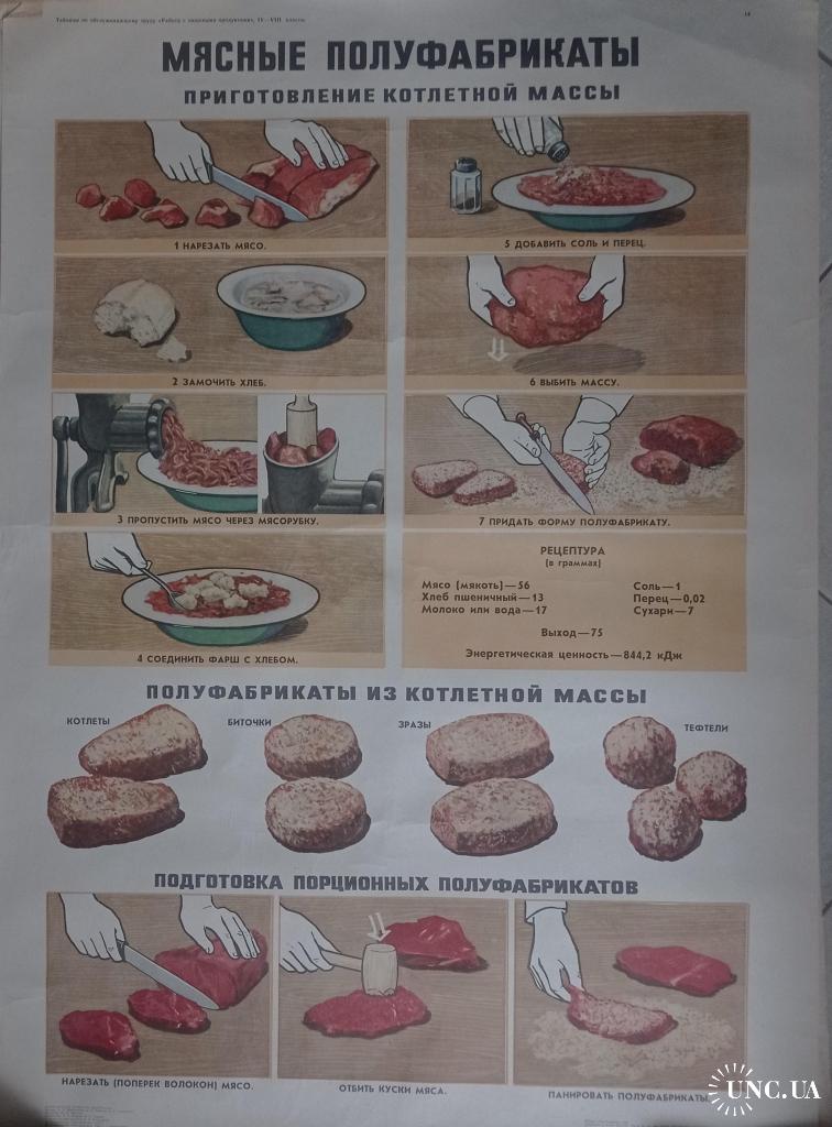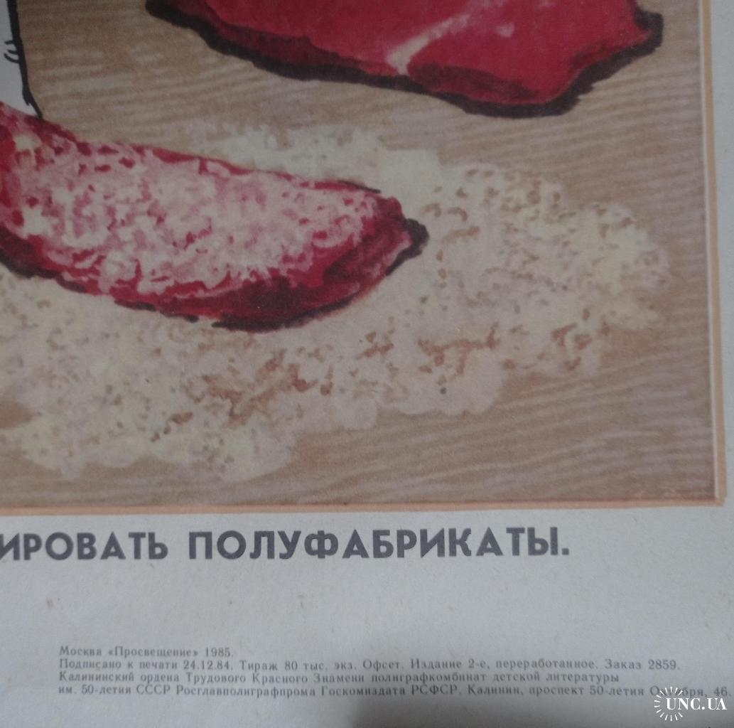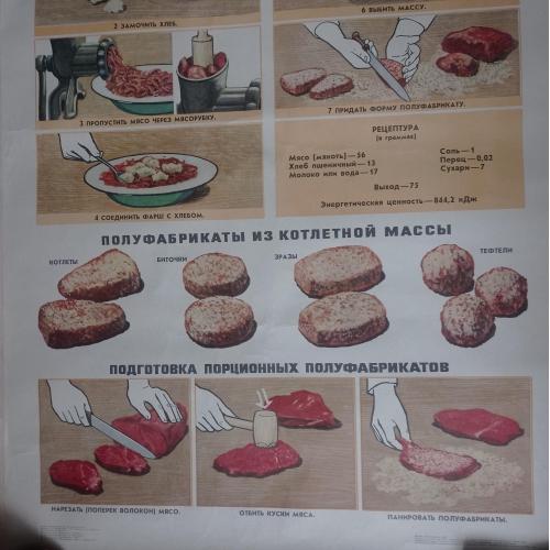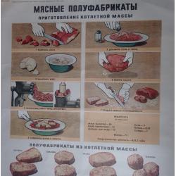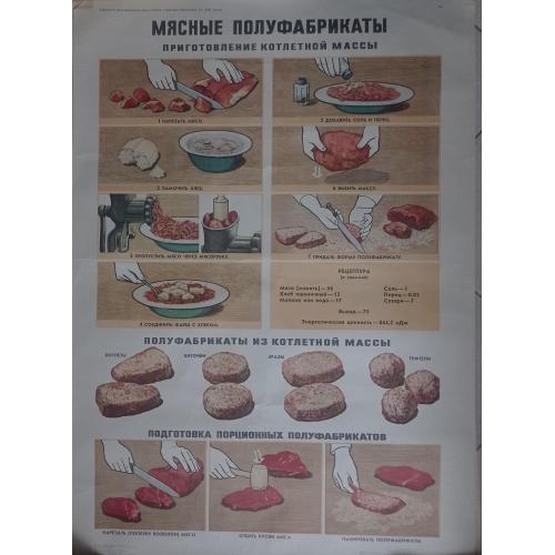 плакат Мясные полуфабрикаты - 1985 Просвещение / 89х61 см