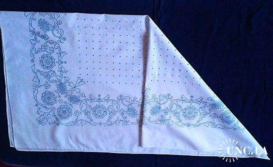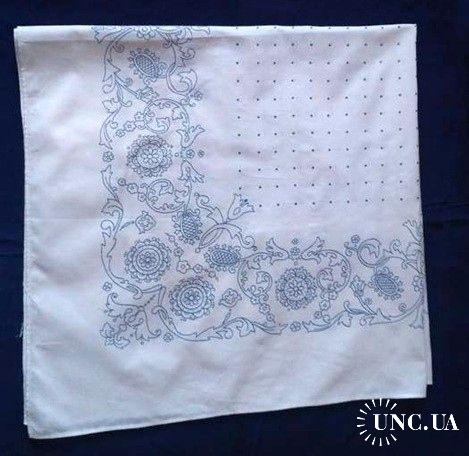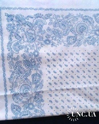 1981-2000Платок хустка, НОВЫЕ платки, 2 шт. натуральный хлопок, БЕЛЫЙ ЦВЕТ ФОНА, синий цвет рисунка, раритет старые запасы