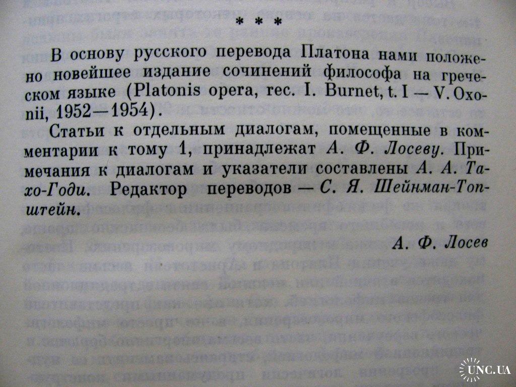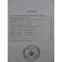 «АПОЛОГИЯ СОКРАТА», «КРИТОН», «ИОН», «ГИППИЙ БОЛЬШИЙ», «ПРОТАГОР», «ГОРГИЙ», «МЕНОН», «КРАТИЛ». Идея тома в целом — прослеживание пути становления платонизма. Все тексты заново отредактированы. Издание снабжено научным аппаратом. Том содержит обширную вступительную статью А.Ф. Лосева: на 69 страницах!