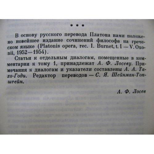 В первый том (1968 г.) Собрания сочинений Платона входят 8 ранних диалогов философа, относящиеся к периоду формирования его учения: