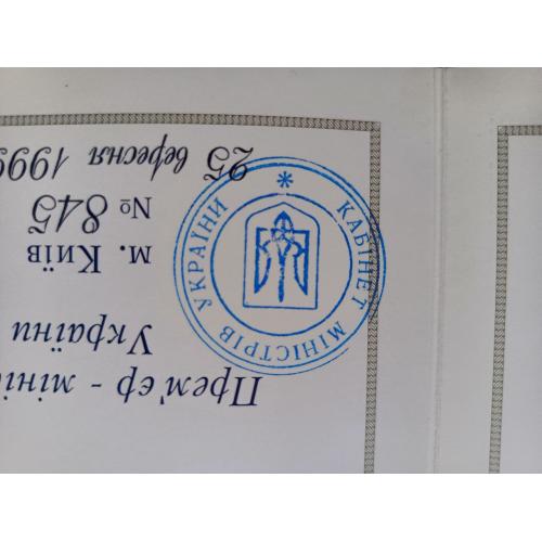 2021-....Почесна грамота кабінету міністрів України, відзнака з посвідченням