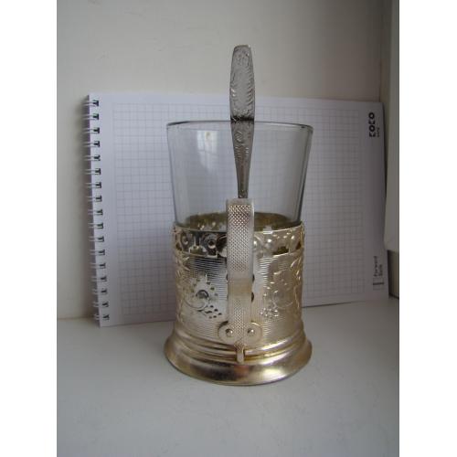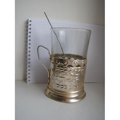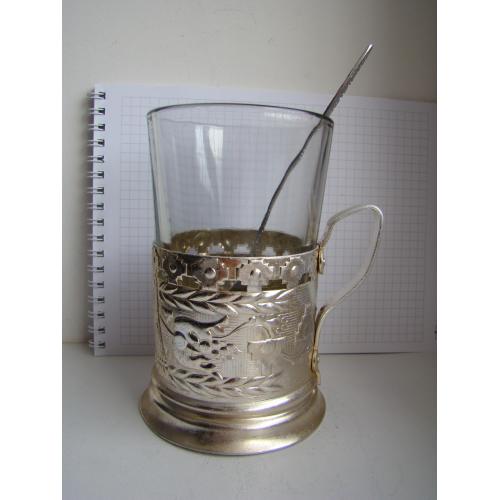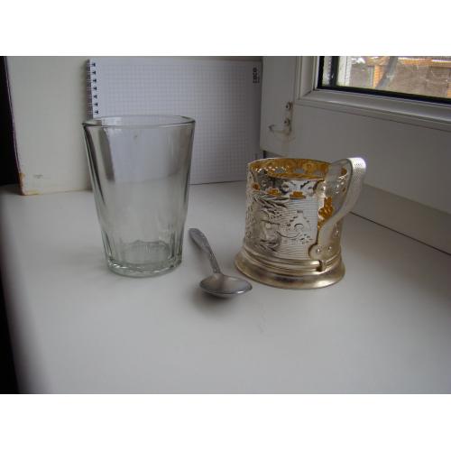 1981-2000Подстаканник из анодированного алюминия. Стакан с клеймом САЗ, ложка из нержавеющей стали. Все в хорошем состоянии, так стояло в серванте. В остальном все как на фото.