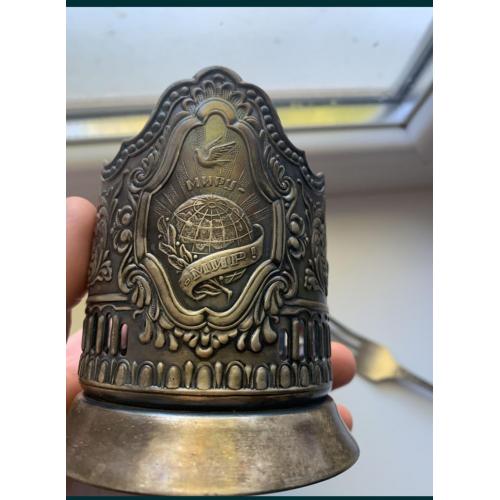 1961-1980Подстаканник времен СССР 'Миру мир!' (Кольчугино).Не битый и не мятый, состояние коллекционное!
