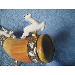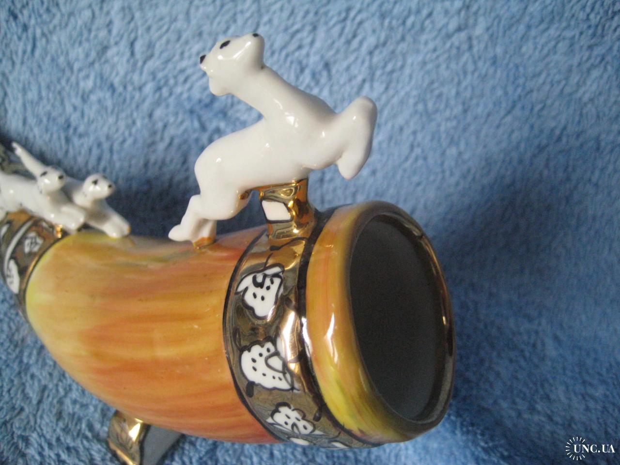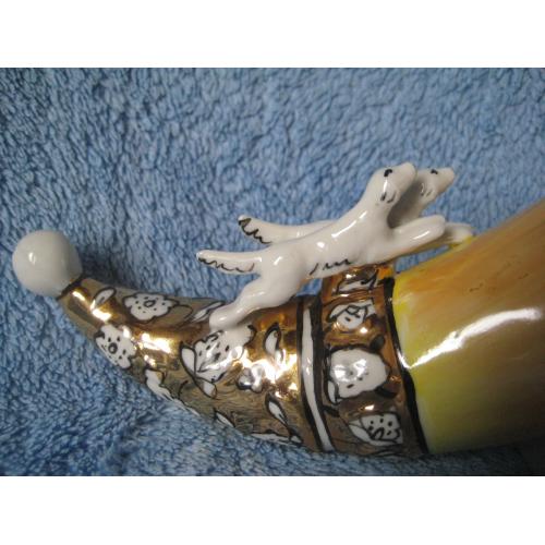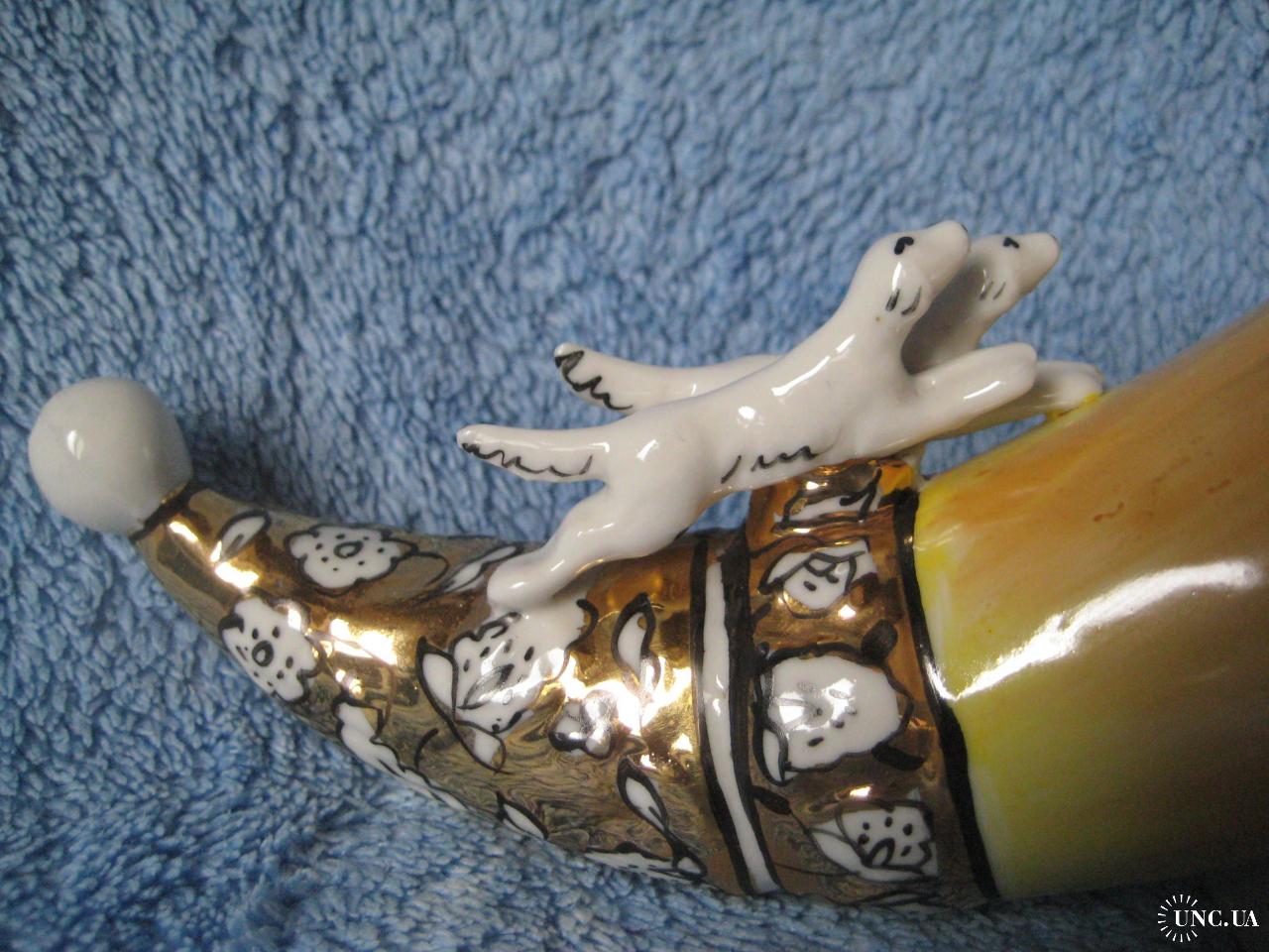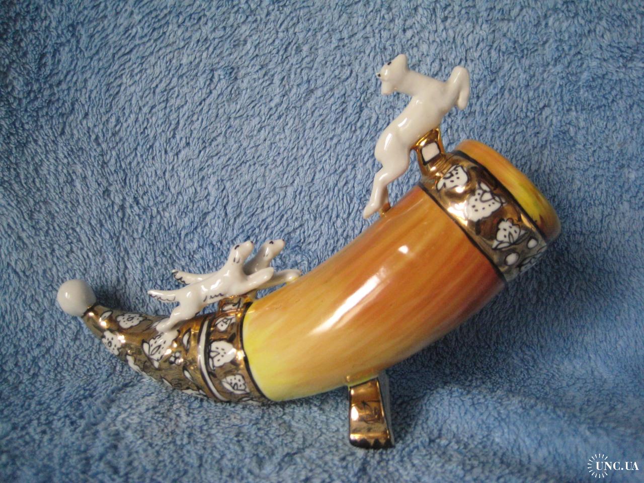 №1127. Оригінальний фарфоровий штоф - Мисливський ріг Київ, клеймо-Книжка, УРСР 1970-1980рр. Стан прошу оцінювати по фото (без реставрації). Висота - 13см., довжина - 19см. Пересилка по Україні - Нова пошта. Для киян можливість зустрічі та перегляду (неділя метро Нивки). В РФ и Белоруссию не отправляю!
