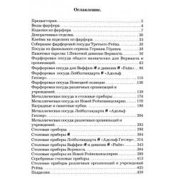 В книге подробно рассмотрена керамическая и металлическая посуда и столовые приборы организаций и руководителей Третьего Рейха, взятые как трофеи.