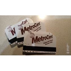 На изображении показаны коллекционные карточки MetroCard Нью-Йоркского транспортного управления (MTA). Эти карточки использовались для проезда в системе общественного транспорта города, но в настоящее время постепенно выводятся из эксплуатации.