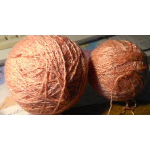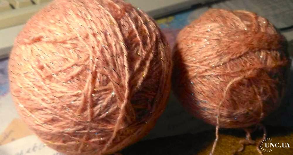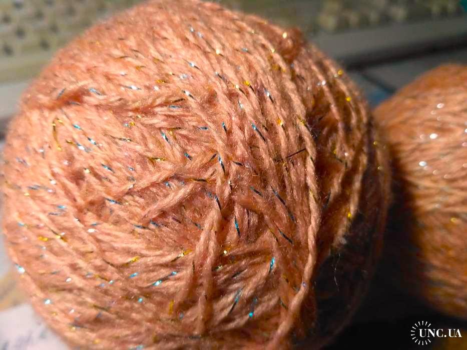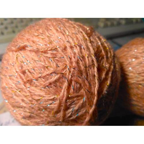 Пряжа нитки абрикосово-розовый цвет с цветным люрексом,