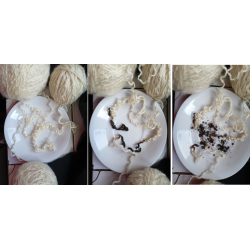 нить прочная, упругая, горит ярко с выраженным для шерсти запахом, пепел распадается под пальцами, см. фото