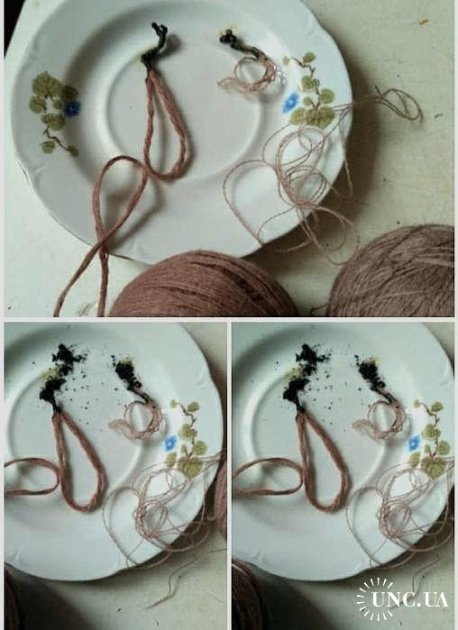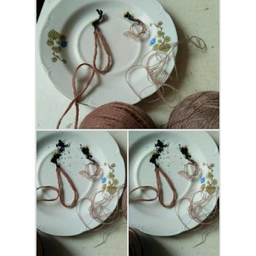 Пряжа нитки шерсть, см. фото до и после поджигания, горит ярко с характерным для шерсти запахом