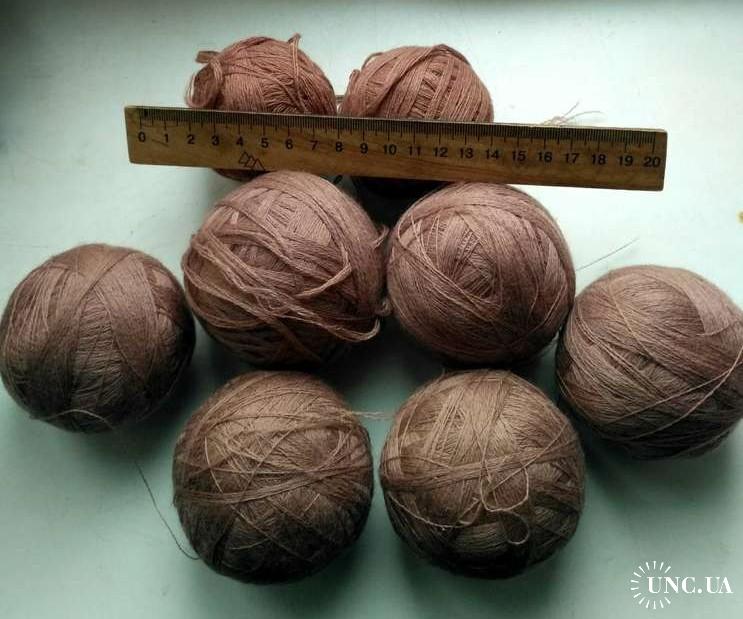 Длину нити не знаю, в хорошем чистом состоянии, практически новая, смотана в клубки, раритет (5-ти рублевая)