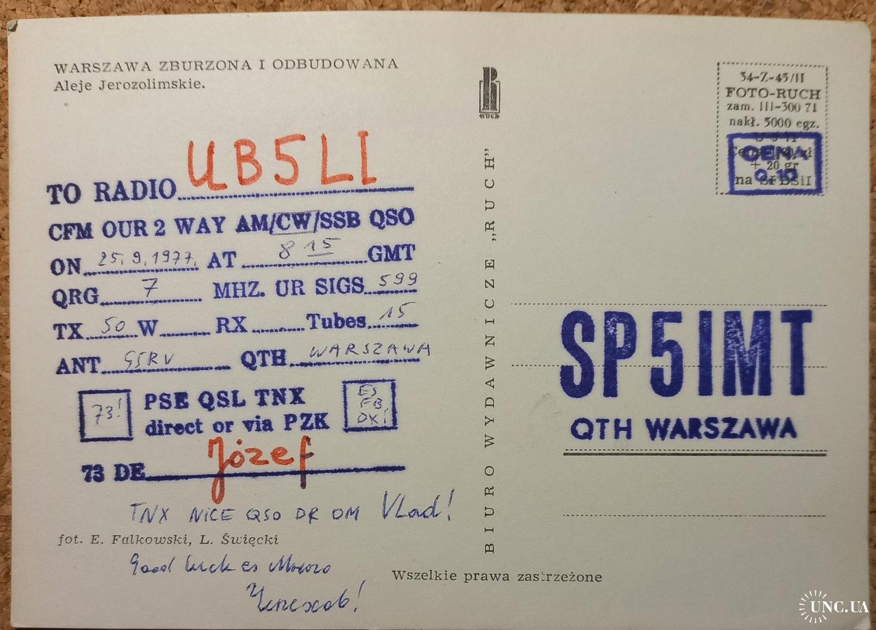 1961-1980Черно-белая фотооткрытка Иерусалимской аллеи.Фото Э.Фальковского, Л. Свецкого. Изд-во «Рух».Тир. 5 000 экз. Заполнена, как QSLс позывным-сигналом и данными радиообмена в эфире. Карточка без дефектов. Состояние хорошее.