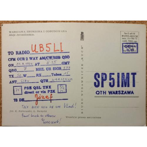 Доставка за счет покупателя Новой или Укрпочтой, заказным письмом, или при личной встрече. Предоплата денежным переводом на карту Приват, через Укрпочту, или другим согласованным способом. Возможно комбинирование лотов. Большой ассортимент, включая QSL-карточки. Готов отправлять за границу.
