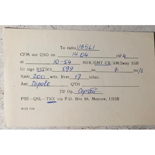Печатная открытка. На лицевой сторонеимеется позывной-сигнал любительской коллективной радиостанции из Ростова-на-Дону. Указана зона №16 по всемирной классификации радиолюбительских зон. К ней относилась вся европейская часть СССР, включая и Украинскую ССР. Также указана область №150 ( часто область в СССР ещё называлась регионом).Весь СССР, включая все союзные республики, был поделен на области. В данном случае обл. 150- это Ростовская область. В советское время Ростов-на-Дону, расположенный на реке Дон, был ключевым индустриальным, культурным и логистическим центром юга РСФСР, часто называемым «воротами Кавказа». С 1937 года город стал административным центром созданной Ростовской области. В годы Великой Отечественной войны город пережил две оккупации, став местом жестоких сражений. В настоящее время это крупнейший город на Юге России. Ростовский кремль — главная и самая узнаваемая достопримечательность города. Его белокаменные стены, башни и купола создают образ, который знаком многим ещё до поездки. На обратной стороне приведены данные радиообмена в эфире. Карточка без дефектов. Состояние отличное.
