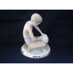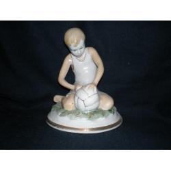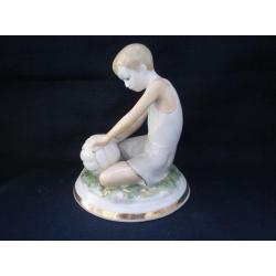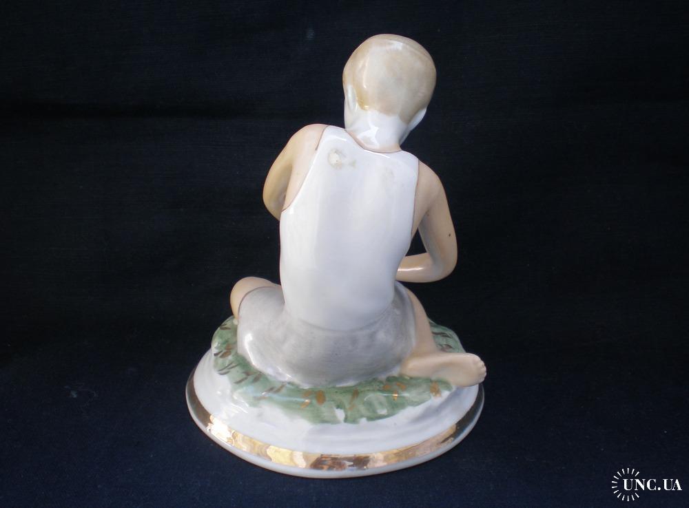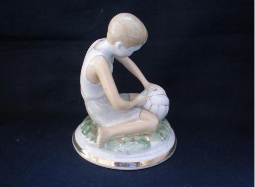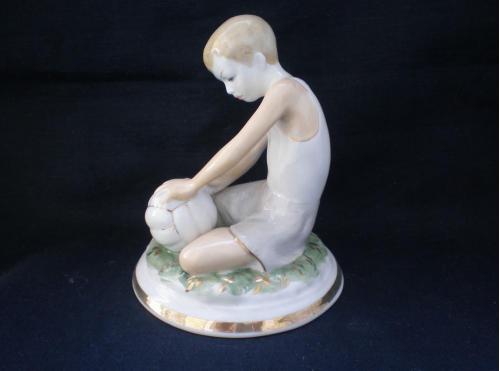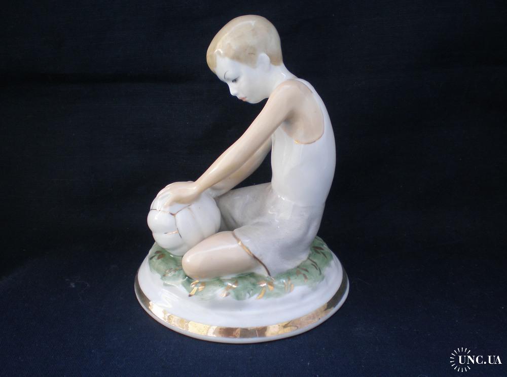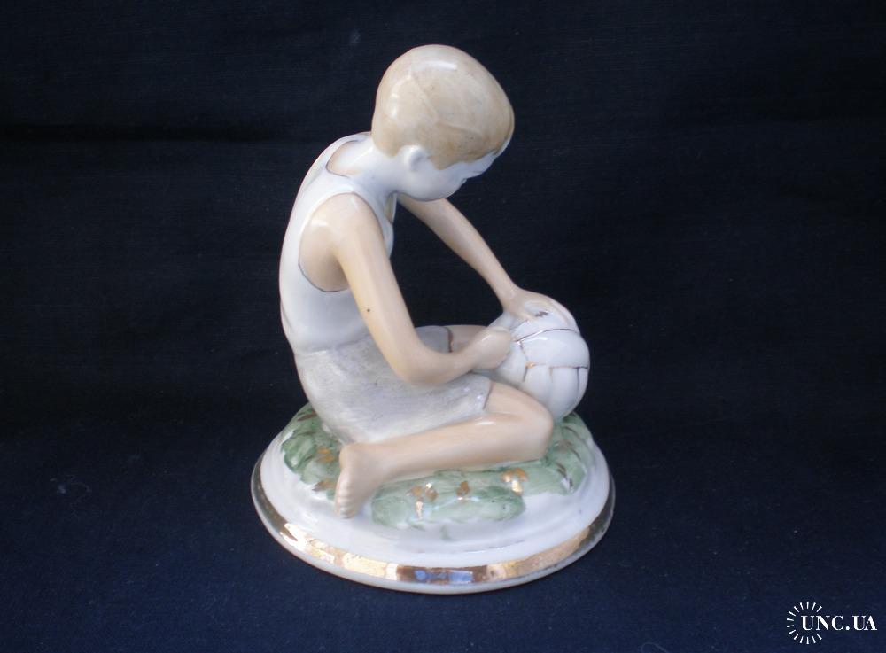 1941-1960Рідкісна порцелянова фігурка "Хлопчик з м'ячем". Завод "Красный фарфорист" (Чудово). Скульптор Т. Федорова, Оригінальне клеймо, висота 15см. Невеликий скол на спині (див фото)