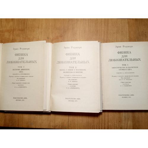 Роджерс. Физика для любознательных. В 3 томах. Издательство: Мир. 1972-1973 гг. Очень хорошее состояние.