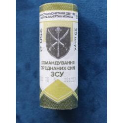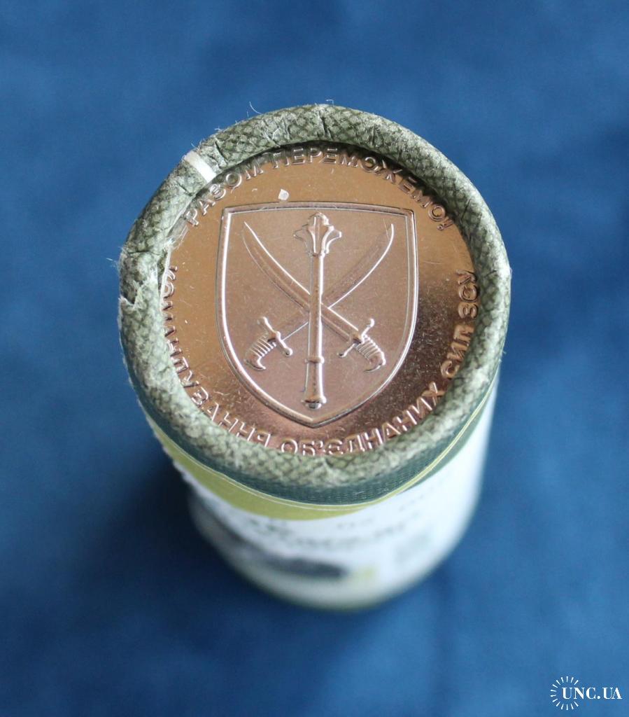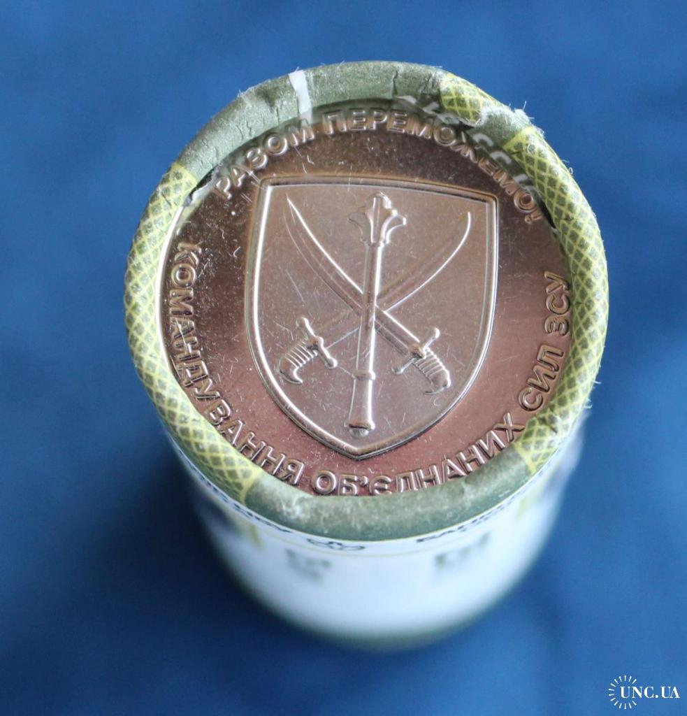 ОригиналМонета номіналом 10 гривень, випущена НБУ у грудні 2023 року, присвячена Командуванню об'єднаних сил ЗСУ, має емблему Командування (пірнач на шаблях), напис "Разом переможемо" та зображує цей важливий орган стратегічного рівня управління військами, що символізує єднання та силу ЗСУ. Її випустили тиражем 10 млн штук, і вона є обіговою пам'ятною монетою, доступною для колекціонерів.