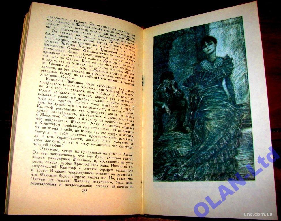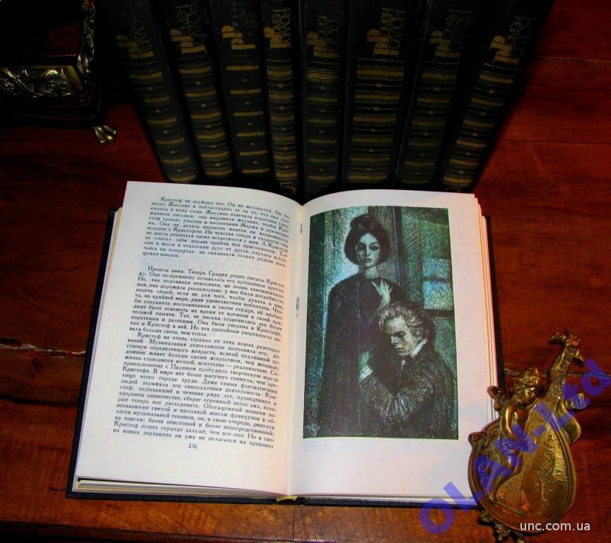 с позолотой. На обложках и корешках– тиснение позолотой бессмертного имени автора « Жана- Кристофа» и нумерация томов.