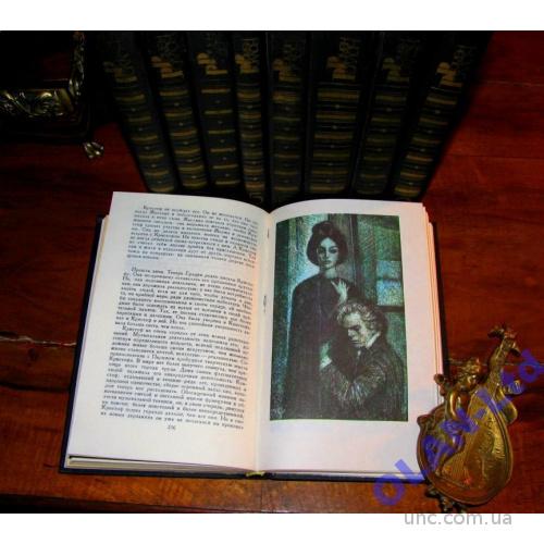Сохранность: Отличная. Все тома без утрат, без библиотечных печатей и без частных экслибрисов.Полная сохранность всех страниц текста и всех цветных и тоновых иллюстраций на отдельных полноформатных вклейках.Девятитомник не требует никакой реставрации!