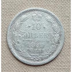 ОригиналРоссия 10 копеек, 1885 г СПБ АГ, серебро