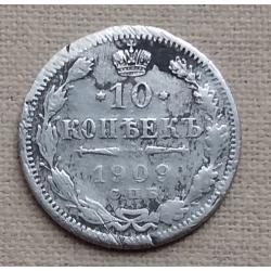 ОригиналРоссия 10 копеек, 1909 г, СПБ ЭБ, серебро