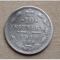 ОригиналРоссия 10 копеек, 1910 г, СПБ ЭБ, серебро