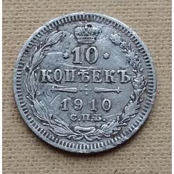 ОригиналРоссия 10 копеек, 1910 г, СПБ ЭБ, серебро