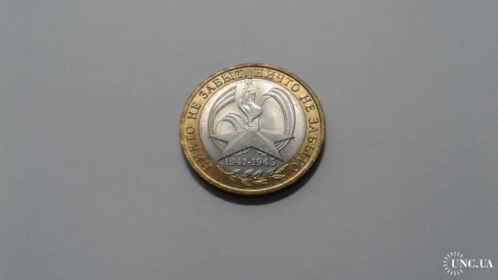 Россия. 10 рублей. 2005. 60 лет победы. Никто не забыт, ничто не забыто.