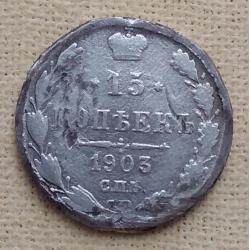 ОригиналРоссия 15 копеек, 1903 г, СПБ АР, серебро