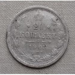 ОригиналРоссия 20 копеек, 1903 г СПБ АР, серебро