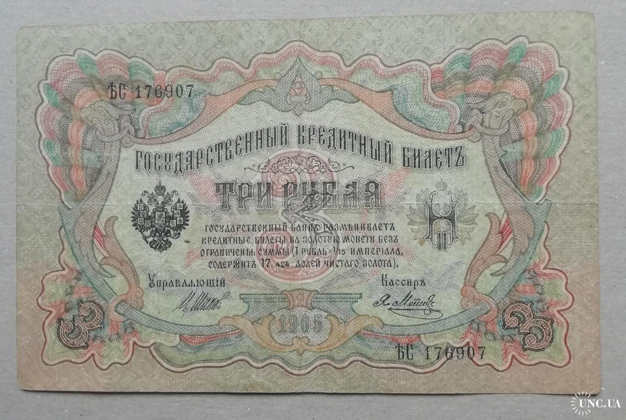 Россия 3 рублей 1905 Шипов-Метц серия ЪС ВРЕМЕННОЕ правит-во март 1917-ноябрь 1917
