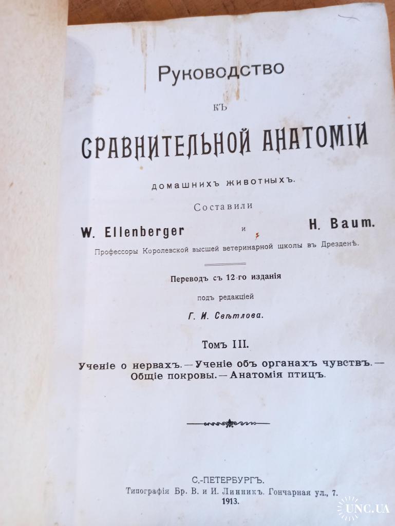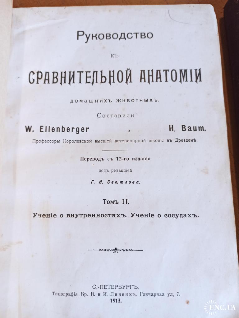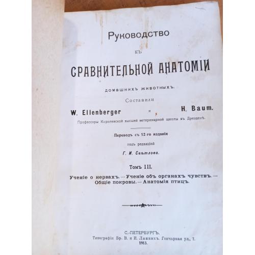 Руководство к сравнительной анатомии домашних животных. Том 2, 3. W. Ellenberger, H. Baum