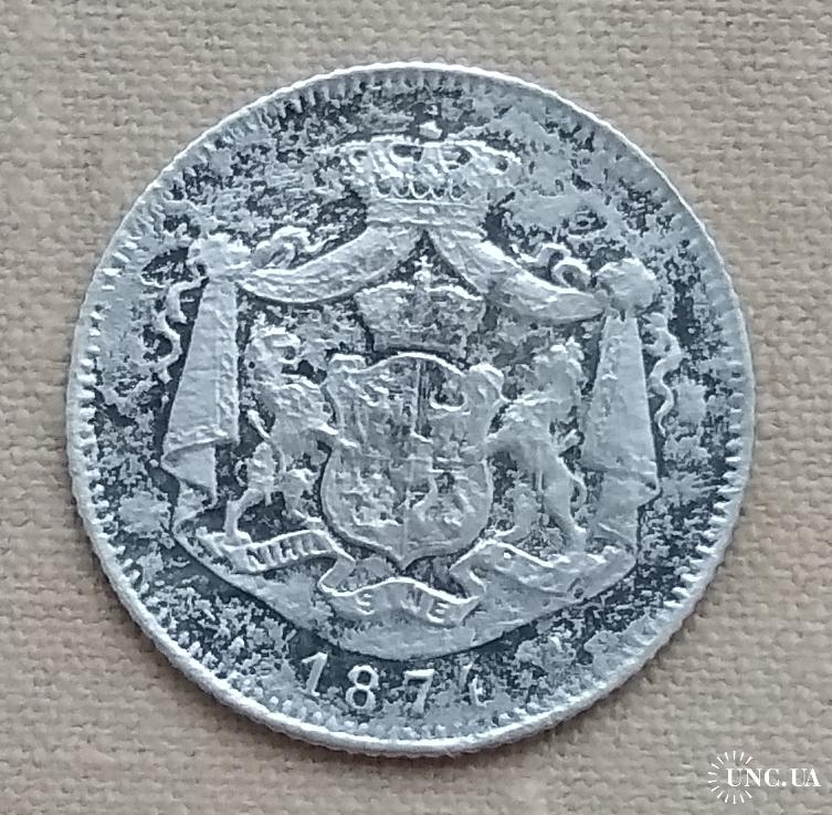 ОригиналРумыния 1 лей, 1874 г, серебро